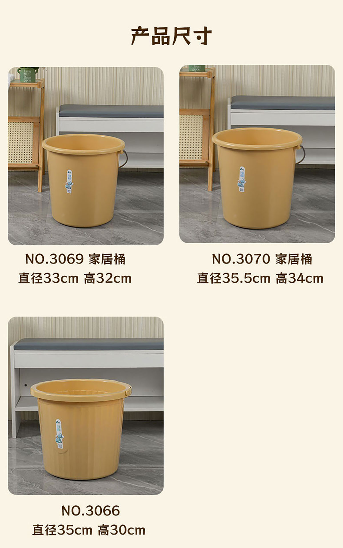 Size: DS-3066(條紋桶):350*300mm DS-3067(條紋桶):350*330mm DS-3069(鐵弓桶):330*320mm DS-3070(鐵弓桶):355*340mm