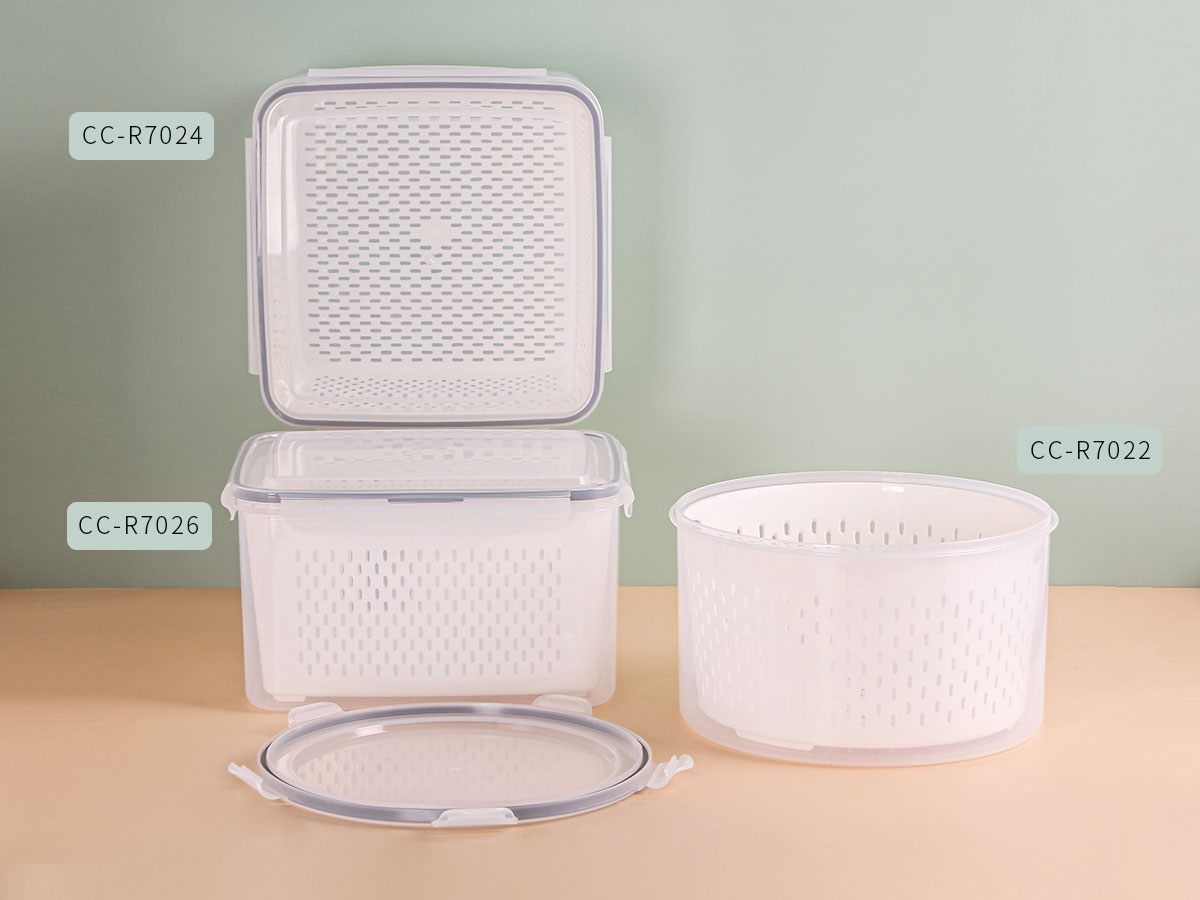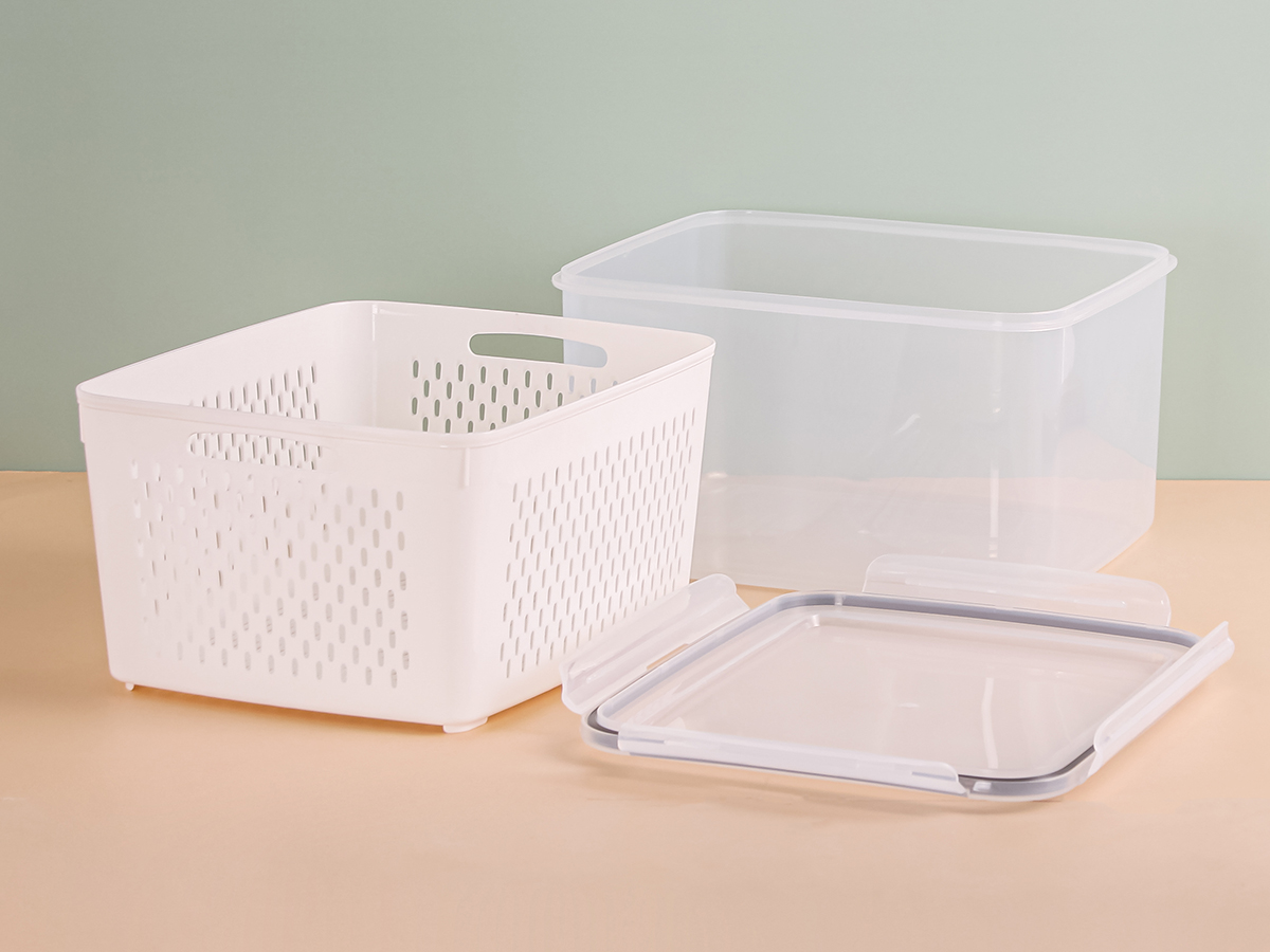 美時圓形/正方形/長方形密封瀝水保鮮盒(5200ml)