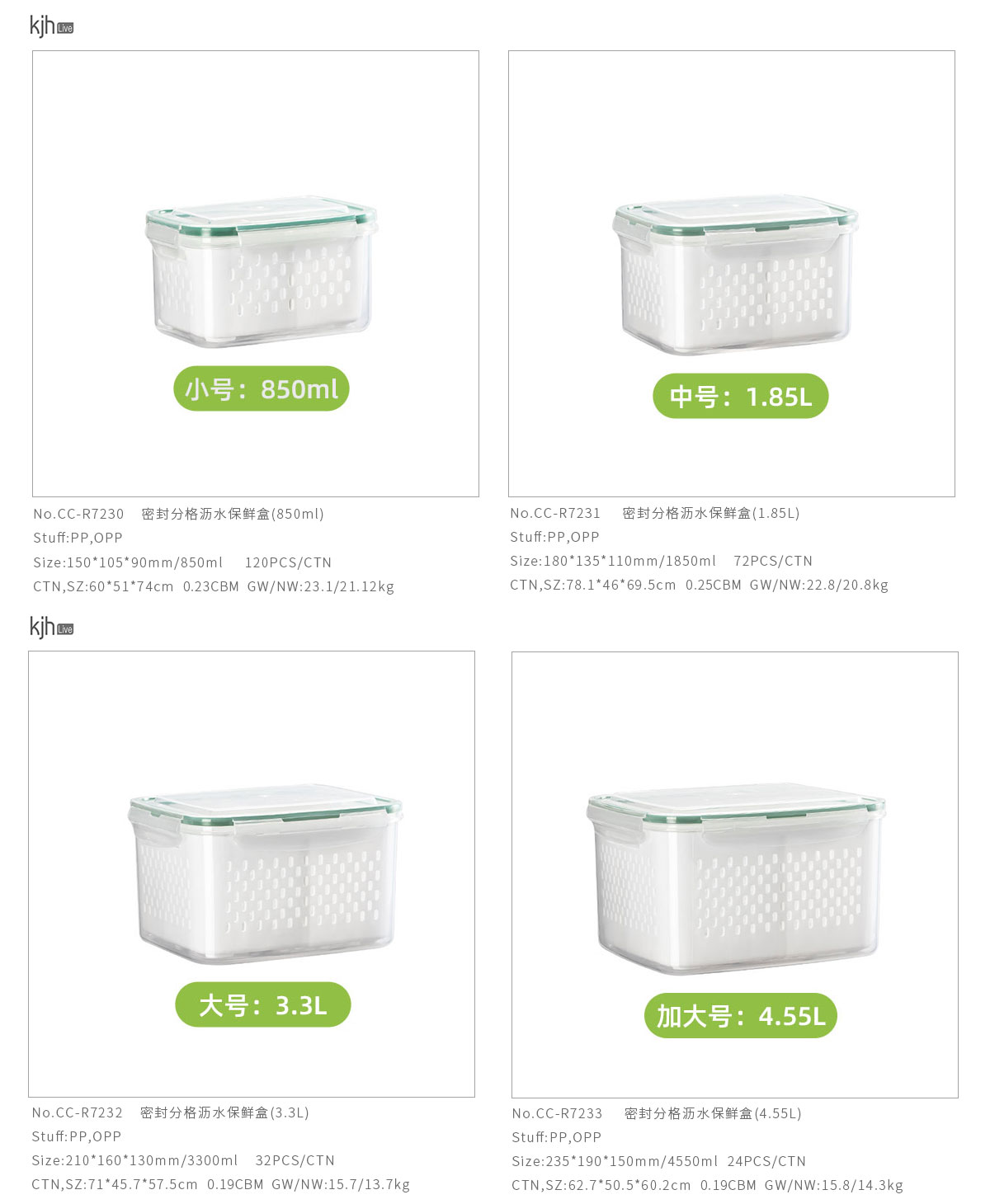 Size: CC-R7230:150*105*90mm/850ml