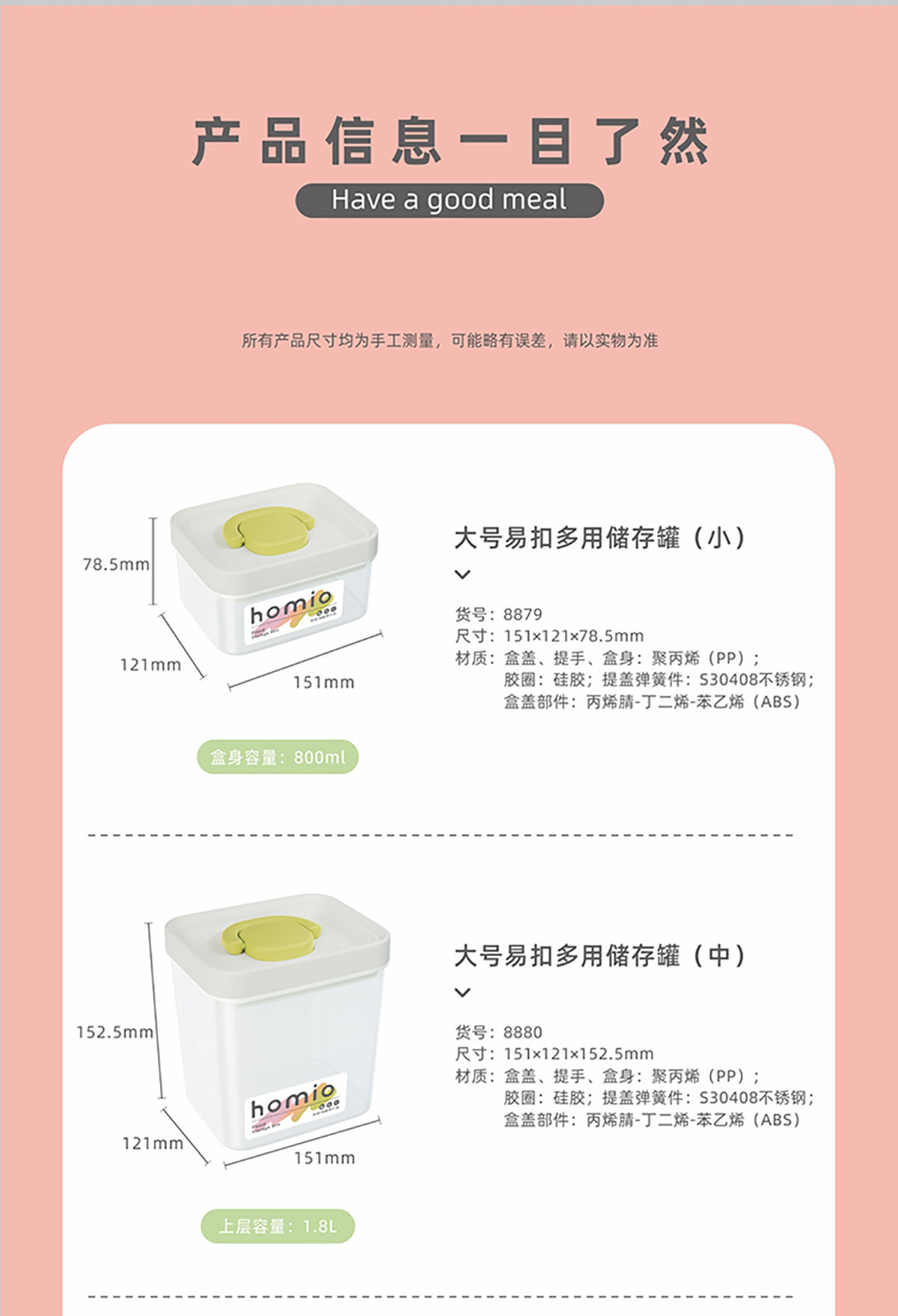 Size: HM-8879(小號800ml):151*121*79mm