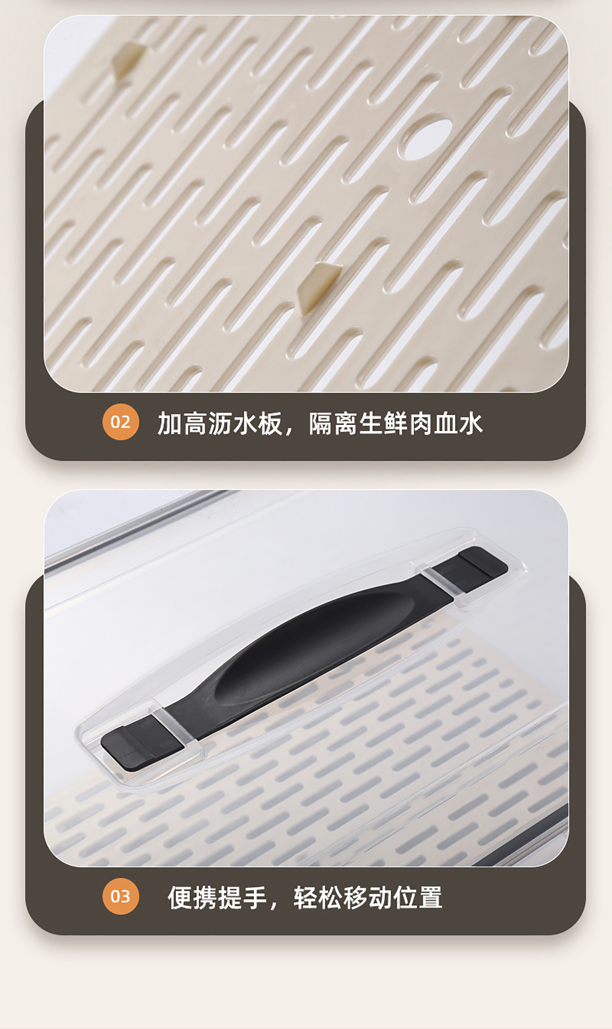 手提密封瀝水板保鮮盒(800nl/1.7L/3.4L/6.0L/10.5L/16.5L)