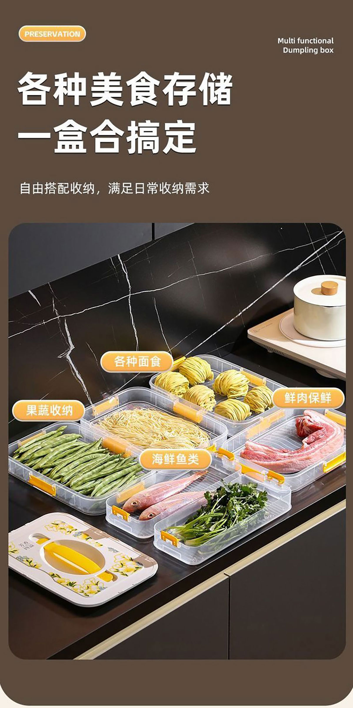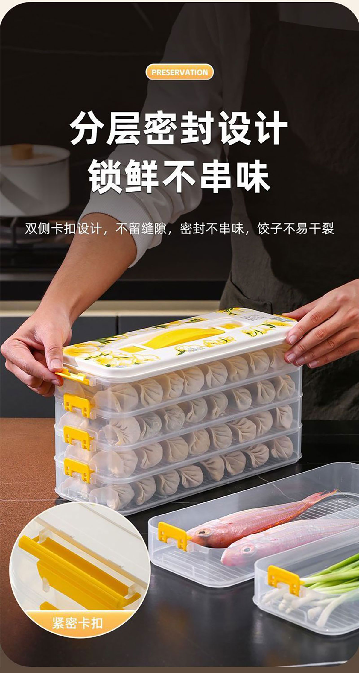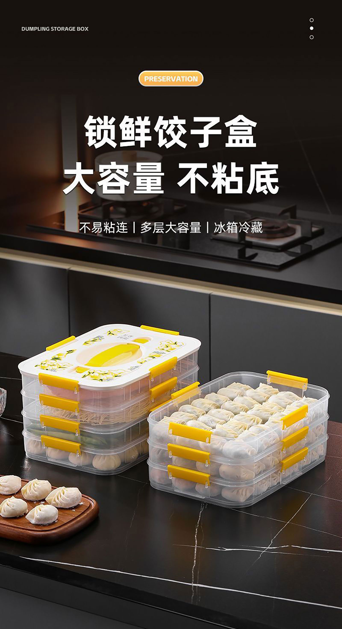 印花手提餃子收納盒(單層/2層/3層/4層) 窄款/寬款