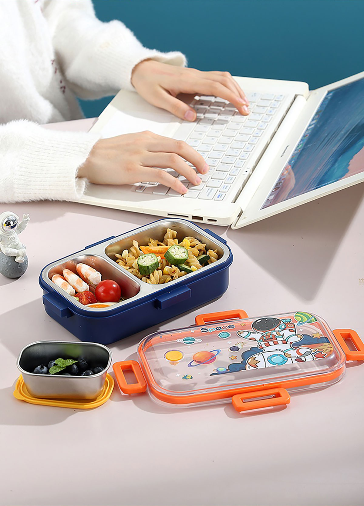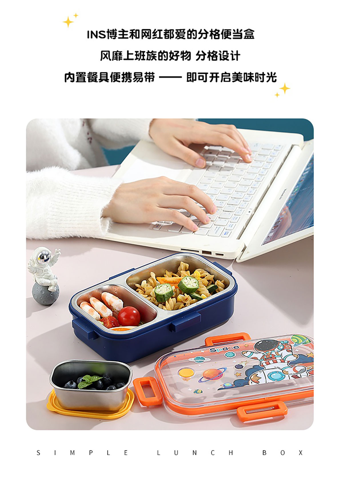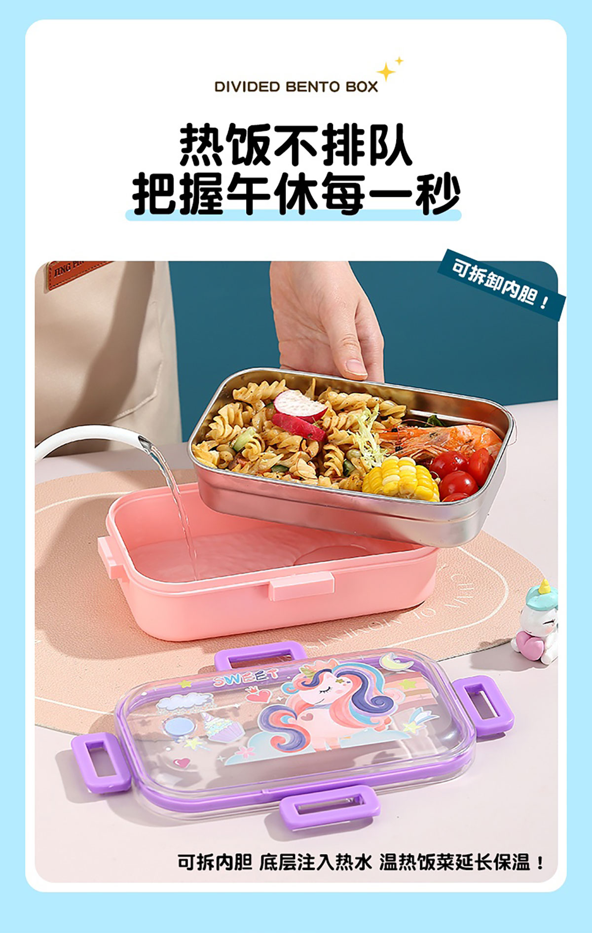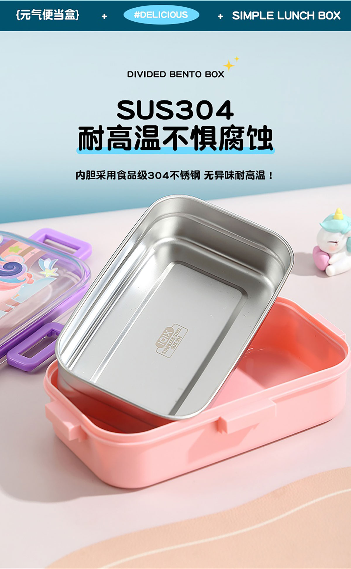 700ml童趣密封不銹鋼餐盒(單格+PP碗150ml/2格+沙拉碗80ml/2格+不銹鋼碗100ml)