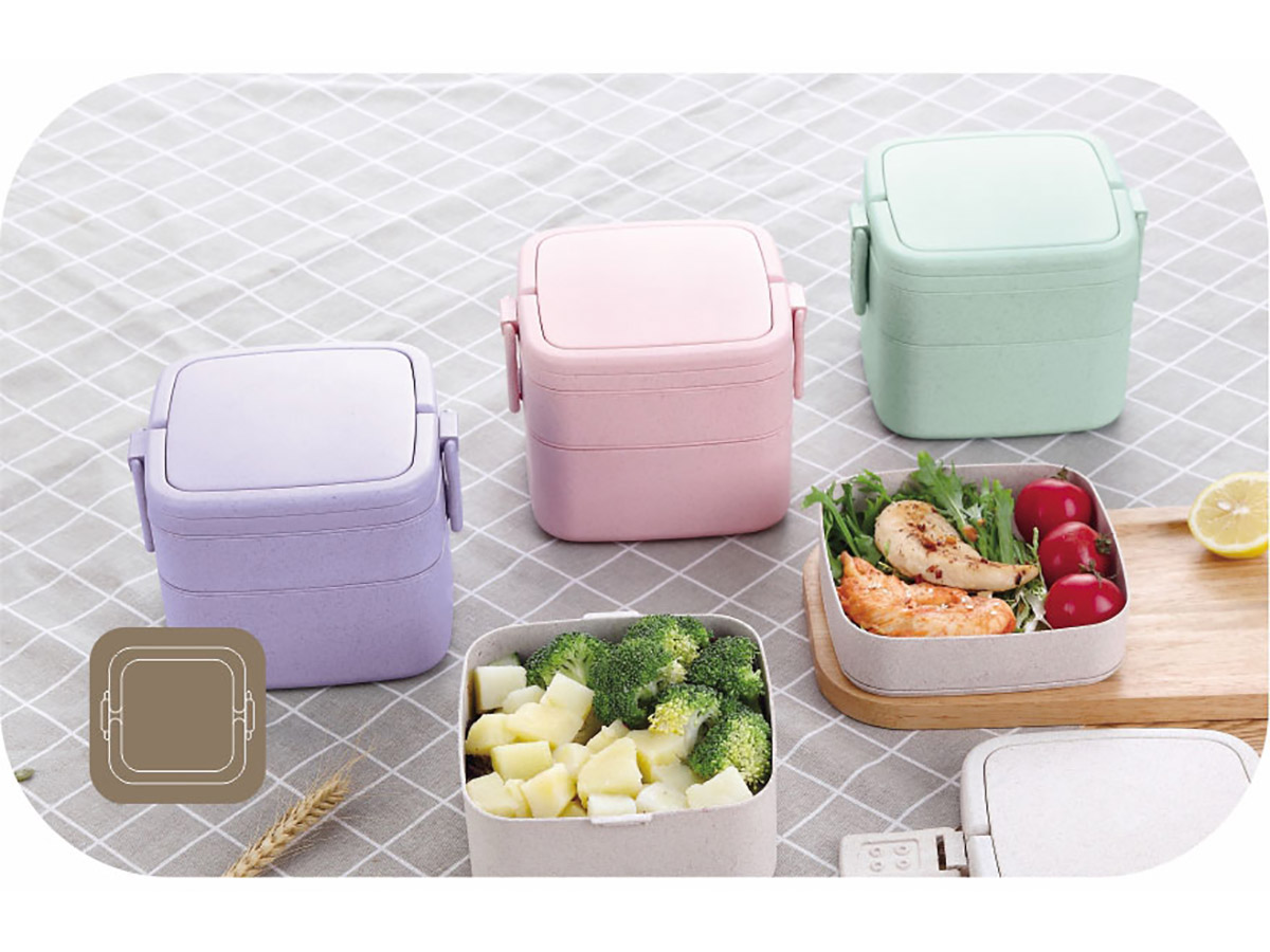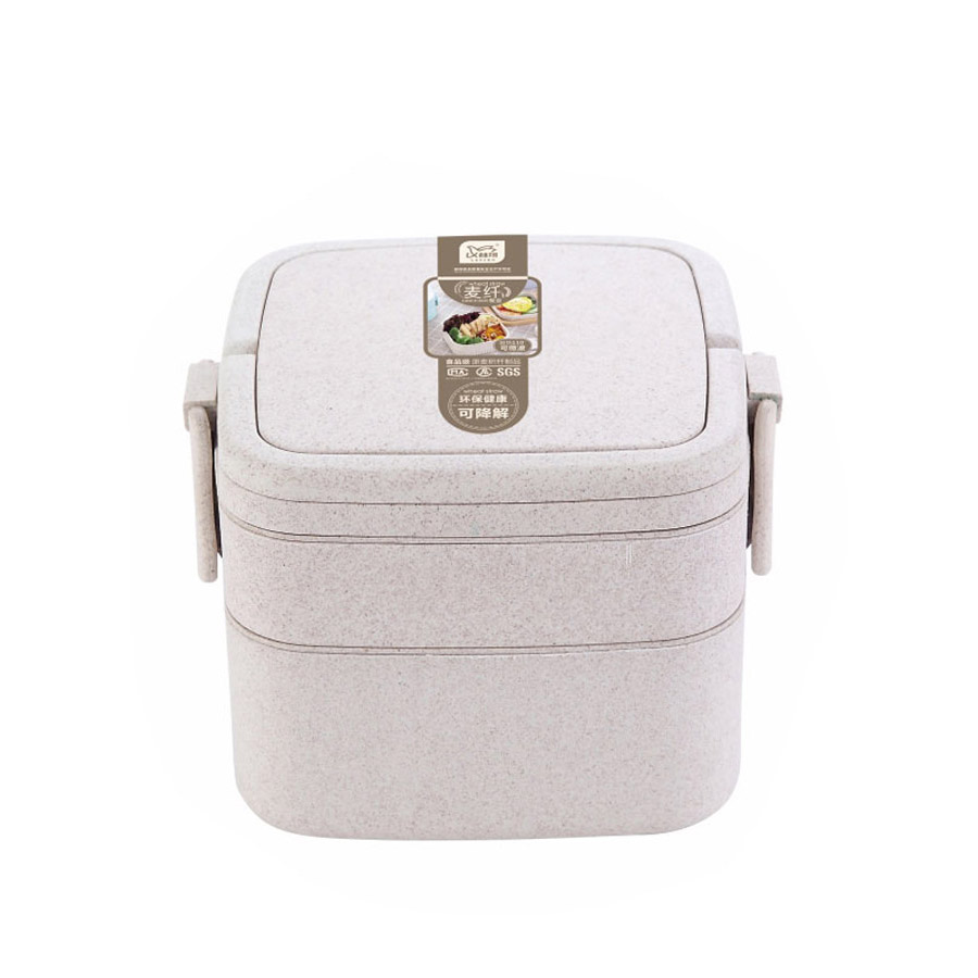 麥纖方形雙層手提餐盒(1000ML)