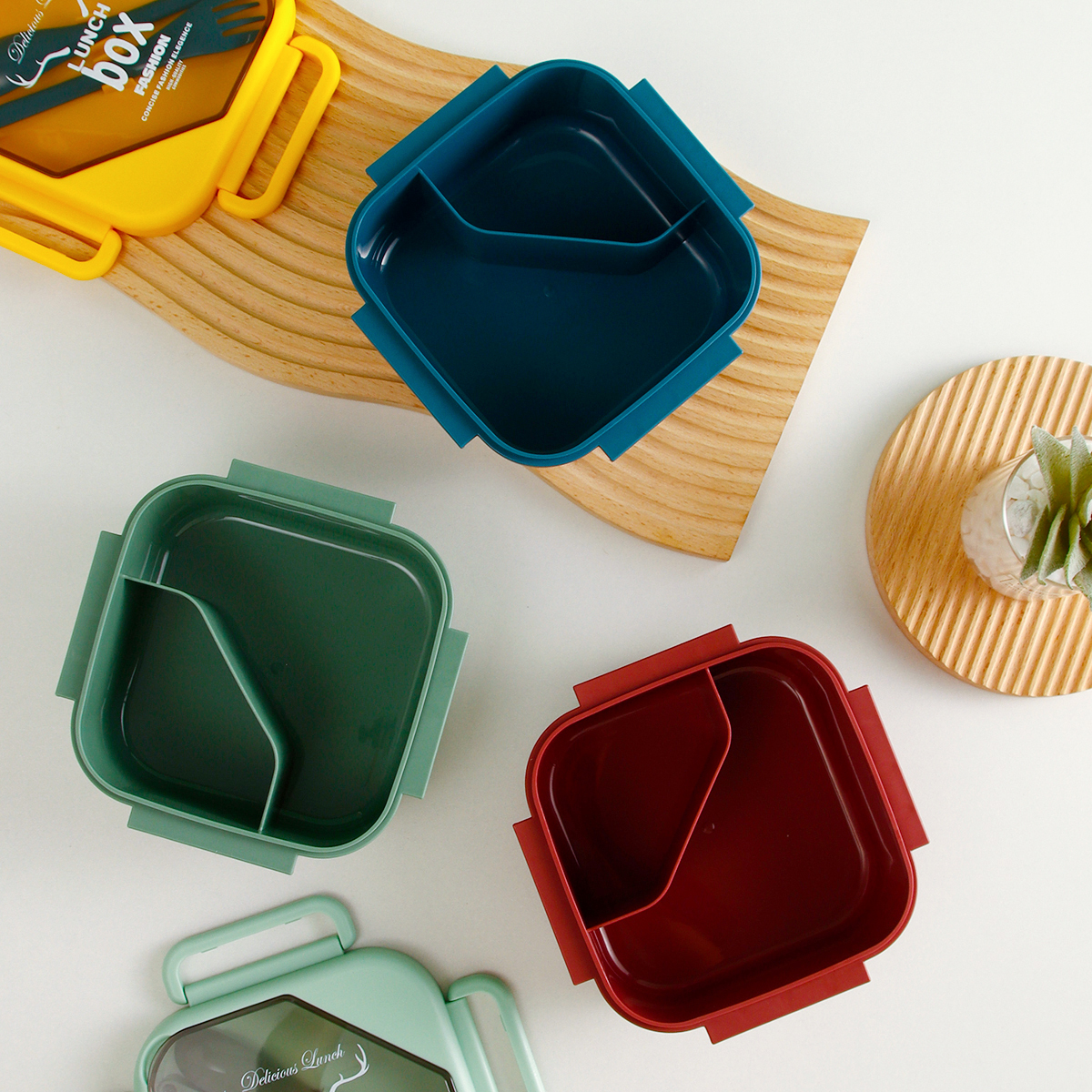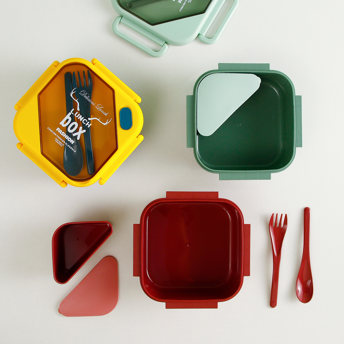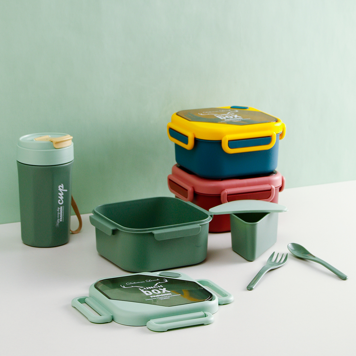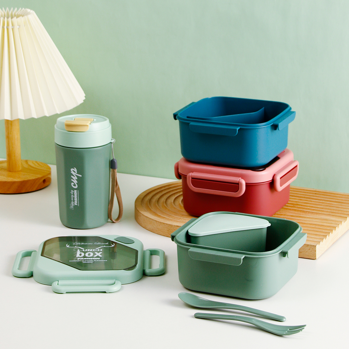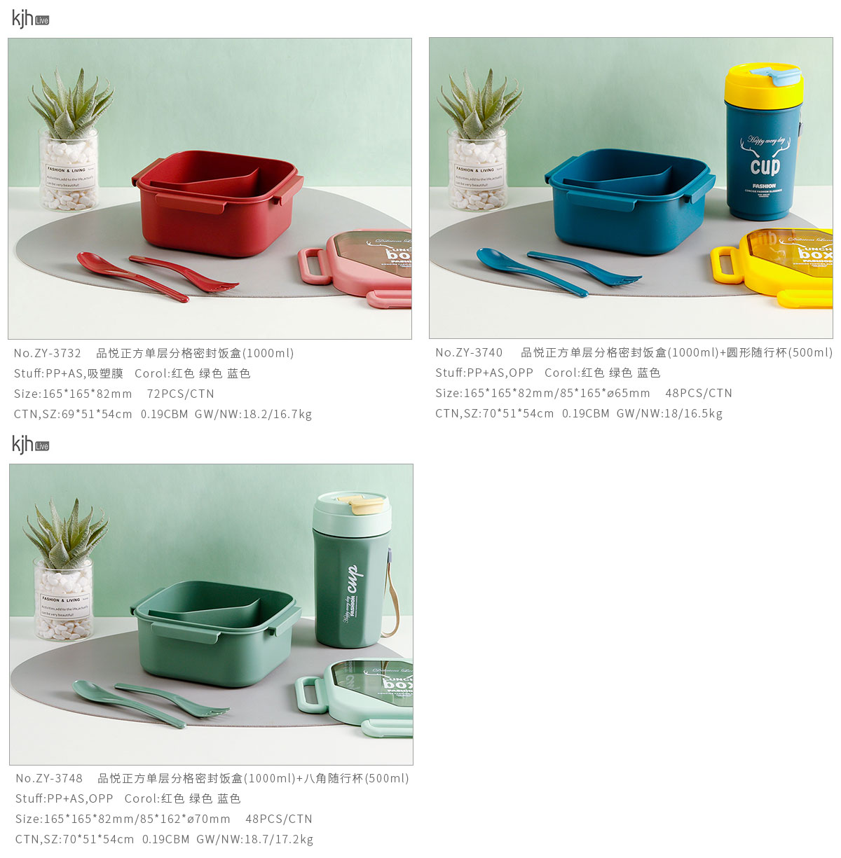 品悅正方單層分格/單層(含格子)密封飯盒+圓形/八角隨行杯