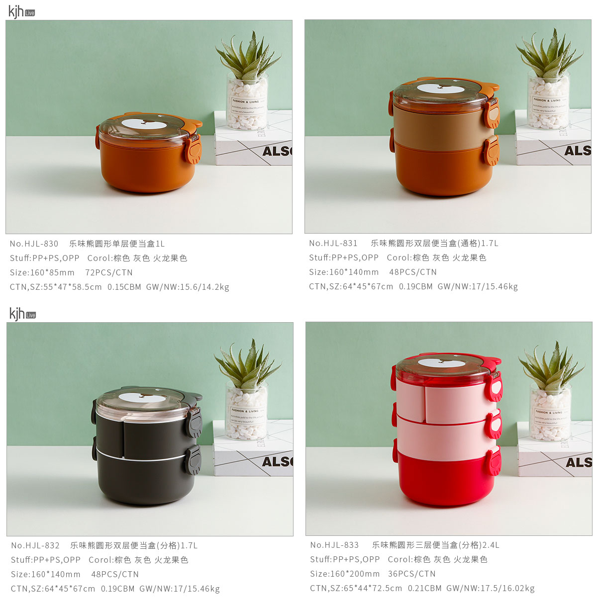 樂(lè)味熊圓形單層/雙層/三層便當(dāng)盒(通格/分格)