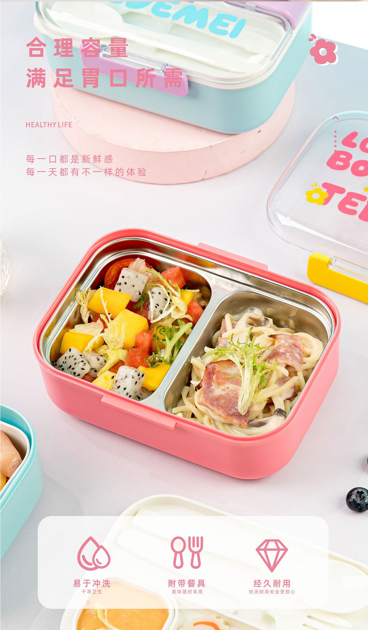Size: 185*145*80mm/內(nèi)盒:750ml/沙拉盒:45ml/外盒:1.1L