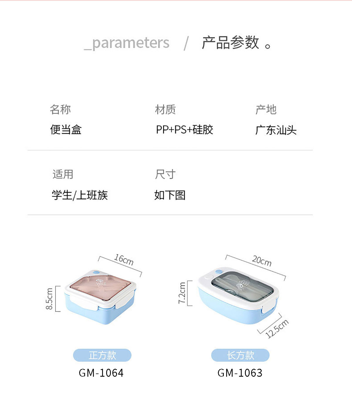 Size: GM-1063(長方形):200*125*72mm GM-1064(正方形):160*160*85mm