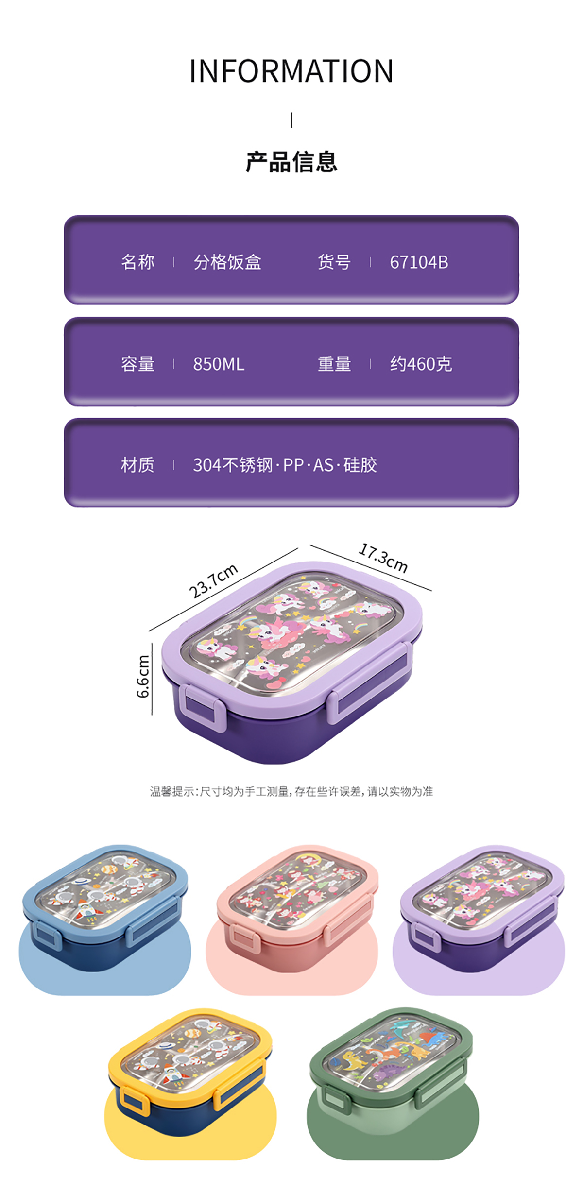 卡通不銹鋼飯盒850ml