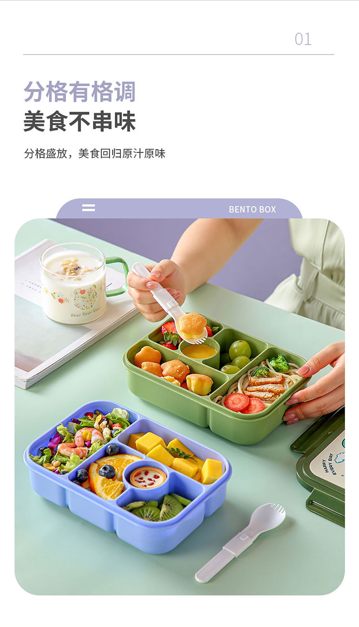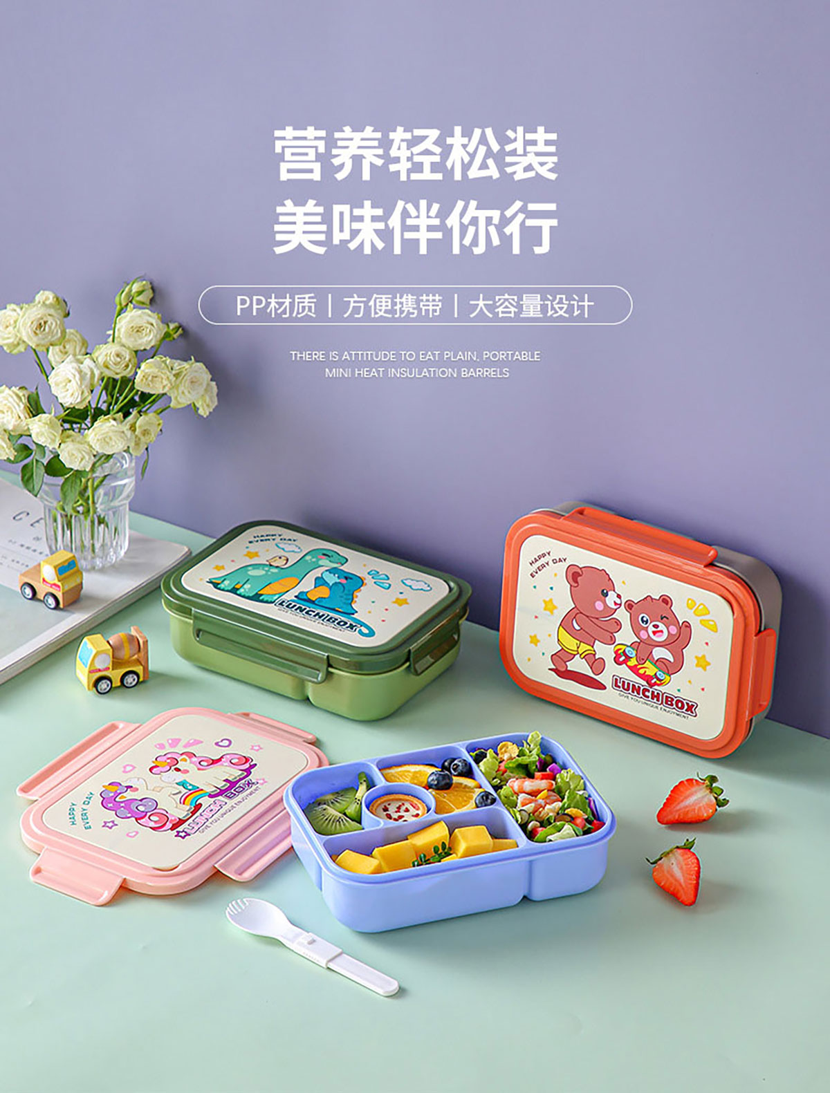 五格卡通便當(dāng)盒1.25L