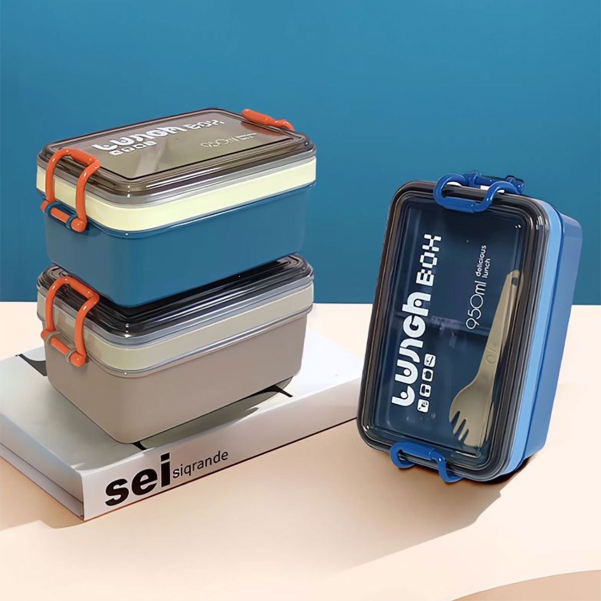 北歐長(zhǎng)方形雙層飯盒(950ML)