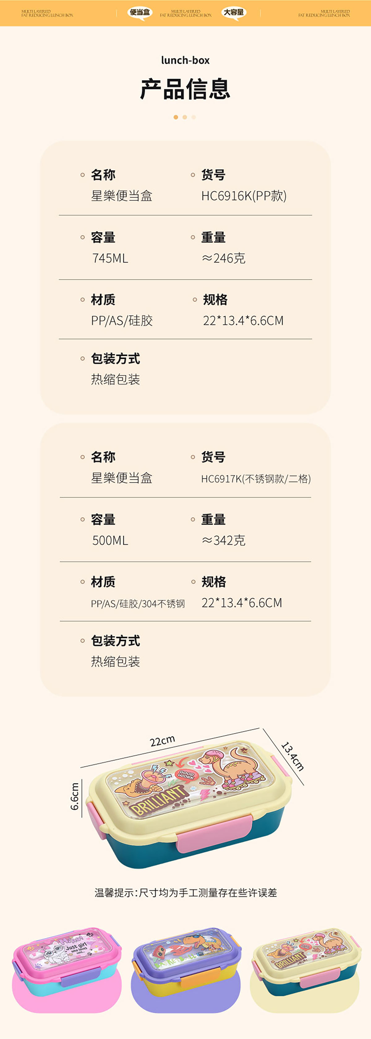 星樂卡通便當(dāng)盒PP款二格/不銹鋼款一格/二格